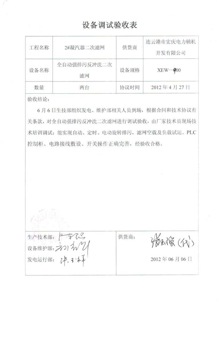 全自動強排污反沖洗二次濾網(wǎng)的驗收報告
