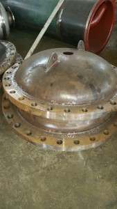 自動濾水器封頂帽主要由:①特制法蘭【壓力--1.0Mpa--1.6Mpa--2.5Mpa--4.0Mpa】; ②封頭【按標(biāo)準(zhǔn)沖壓】; ③起重吊耳【按標(biāo)準(zhǔn)模具制作】; ④高壓密封器【耐壓特殊設(shè)計工藝對外不具體說明】; ⑤封頂帽【是焊接拼裝件】。