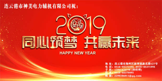 喜悅伴著汗水,成功伴著艱辛,遺憾激勵奮斗,我們不知不覺地走進了2019年,這是神美公司成立后的第25個年頭了,連云港市神美電力輔機有限公司總經(jīng)理攜全體員工,謝謝一年來所有對我公司的大力支持和幫助的用戶!愿我們在新的一年里團結(jié)開拓,把我們的工作做得更好!籍新春佳節(jié)之即,祝大家新年愉快,身體健康,萬事如意。加薪買房購小車,娶妻生子成家室!接財神。