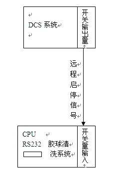 根據(jù)雙葉推拉護翼式膠球清洗裝置系統(tǒng)的工藝要求,控制系統(tǒng)有手動、自動和定時三種操作方式。 (1)在手動操作方式下可執(zhí)行每臺設備的獨立運行。主要在系統(tǒng)調試、設備檢修、處理事故時使用。 (2)在自動操作方式下,按照清洗工藝流程由PLC控制各臺設備自動運行,設有就地控制和遠程控制系統(tǒng)。遠程控制可通過通訊(下傳起停指令)或電氣接線來實現(xiàn)。其工作流程如下: 就地或遠方DCS操作啟動—關閉收球網(wǎng)并到位—啟動膠球泵運行—開膠球泵出口閥—延時開送球閥—開送球室轉輪開始清洗—延時至設定清洗時間—關收球室轉輪收球—延時至設定收球時間—關水泵出口閥(如果有)—關閉送球閥—停膠球泵。 (3)在定時操作方式下,可以根據(jù)清洗工藝要求,每隔一定時間(可任意設定,時間調整范圍:0.1秒~9990小時)起動系統(tǒng)進行清洗作業(yè)。 (4)壓差保護 系統(tǒng)運行清洗中,當收球網(wǎng)前后壓差達到設定值1時—系統(tǒng)報警并停止清洗-關閉收球室轉輪收球—延時10分鐘后—打開收球網(wǎng)—關閉膠球泵出口閥—關送球閥—停膠球泵。 當收球網(wǎng)前后壓差超過設定值1并達到設定值2時—系統(tǒng)報警并立即關閉裝球室轉輪開始收球,同時打開收球網(wǎng)—關閉膠球泵出口閥—關送球閥—停膠球泵。 (5)本設備系統(tǒng)還具有以下聯(lián)鎖與報警功能: ①收球網(wǎng)和閥門開、關不到位(在規(guī)定時間內),發(fā)出報警信號; ②收球網(wǎng)關不到位,水泵不能起動; ③水泵起動后,才能打開水泵出口閥; ④水泵出口閥未關到位,不能停泵; ⑤收球網(wǎng)前后壓差超限,控制系統(tǒng)不能起動。 (6)膠球清洗裝置控制系統(tǒng)與DCS系統(tǒng)聯(lián)接形式有: ① 通過串口通訊如下聯(lián)接: ② 通過開關量電氣信號如下聯(lián)接: |